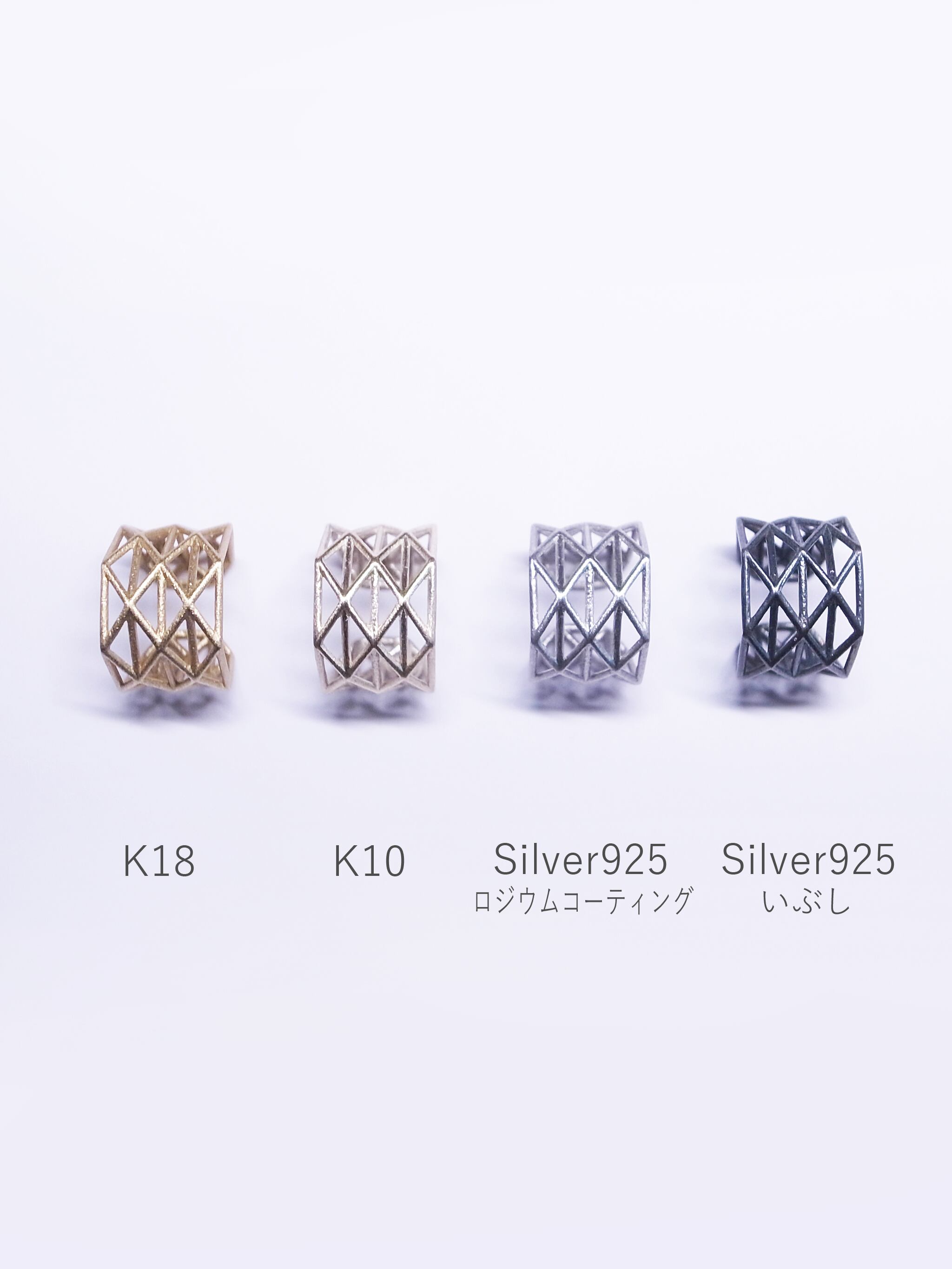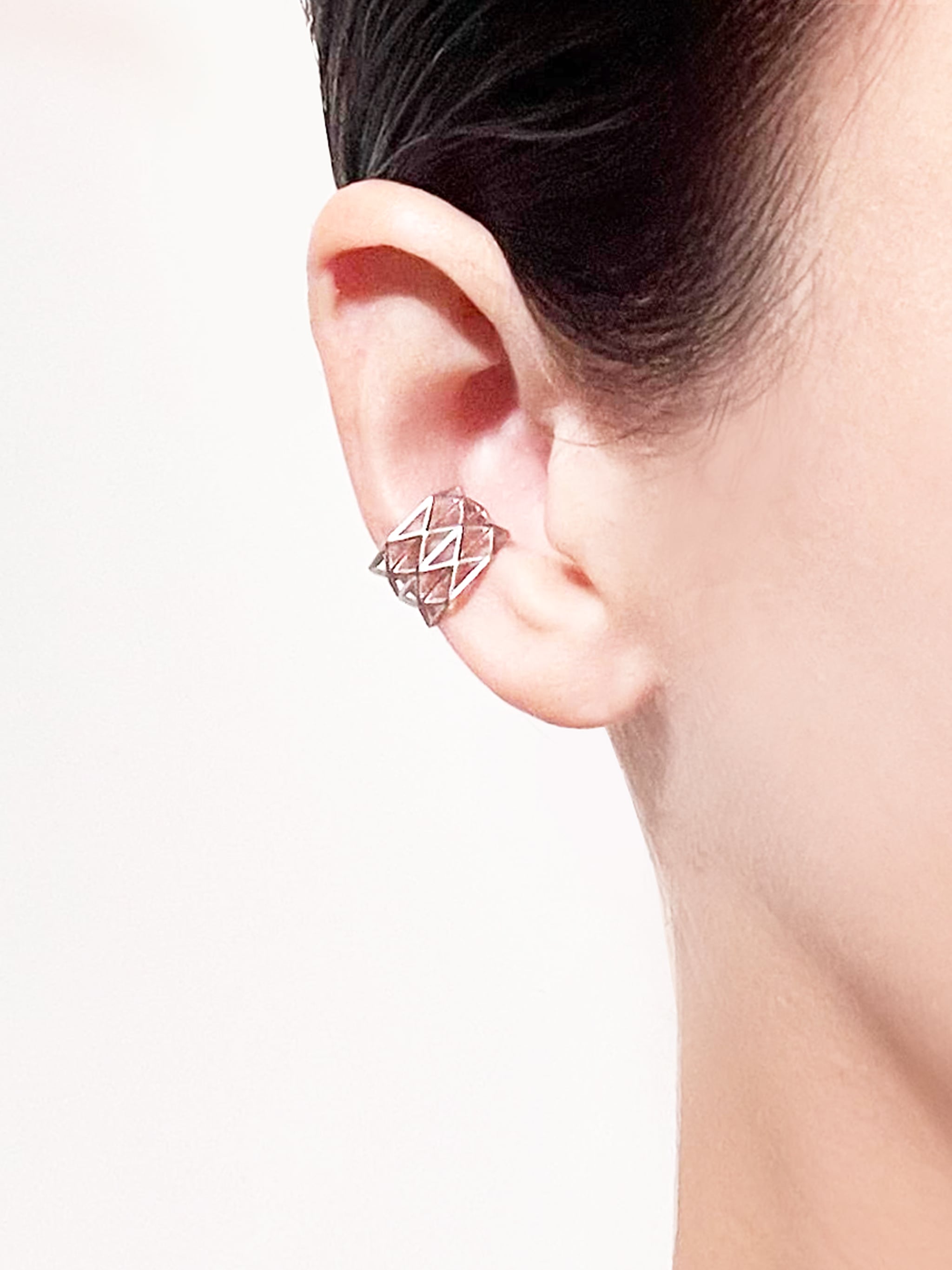 多角形で構成されたイヤカフは点でフィットし