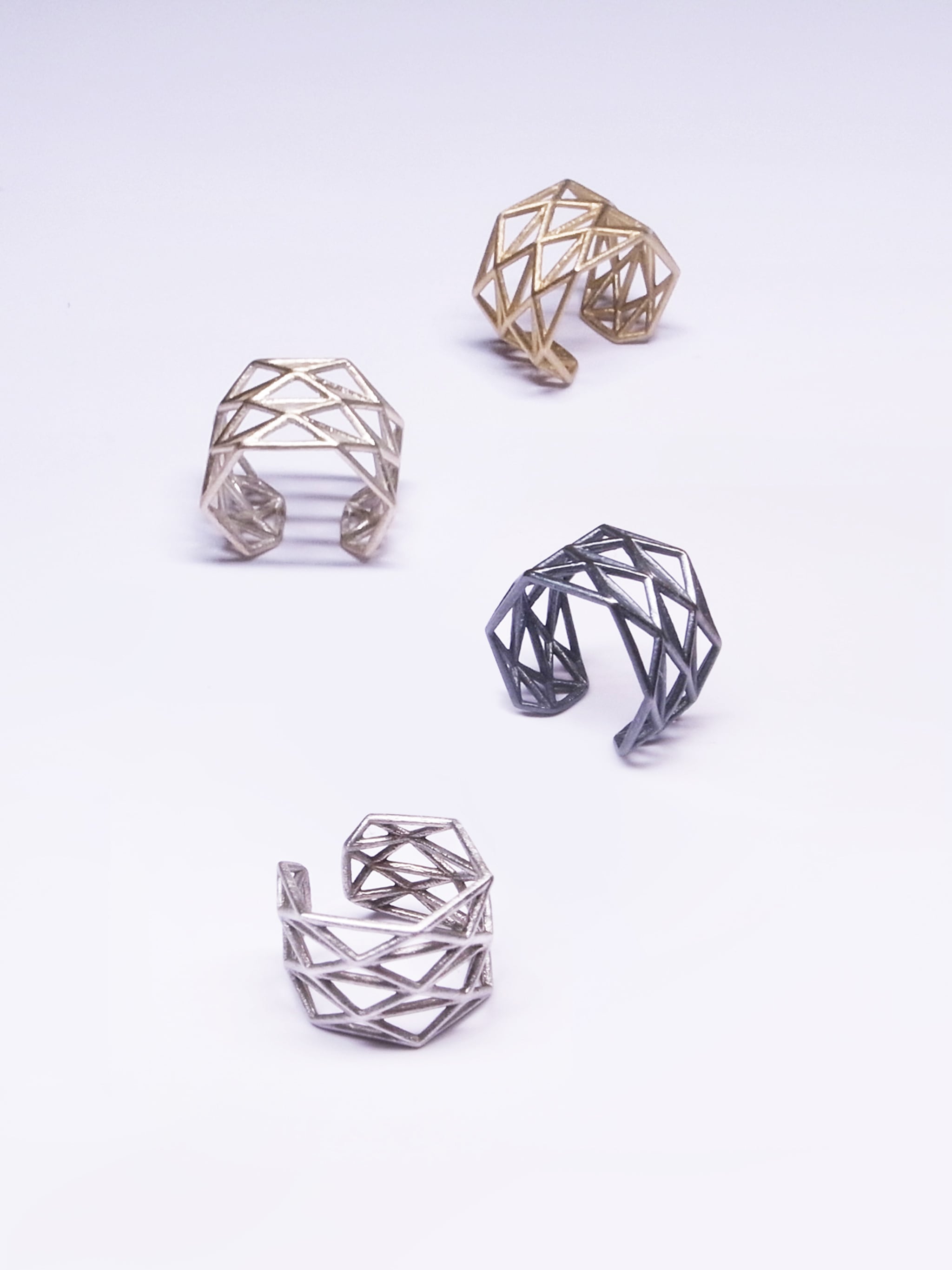 多角形で構成されたイヤカフは点でフィットし